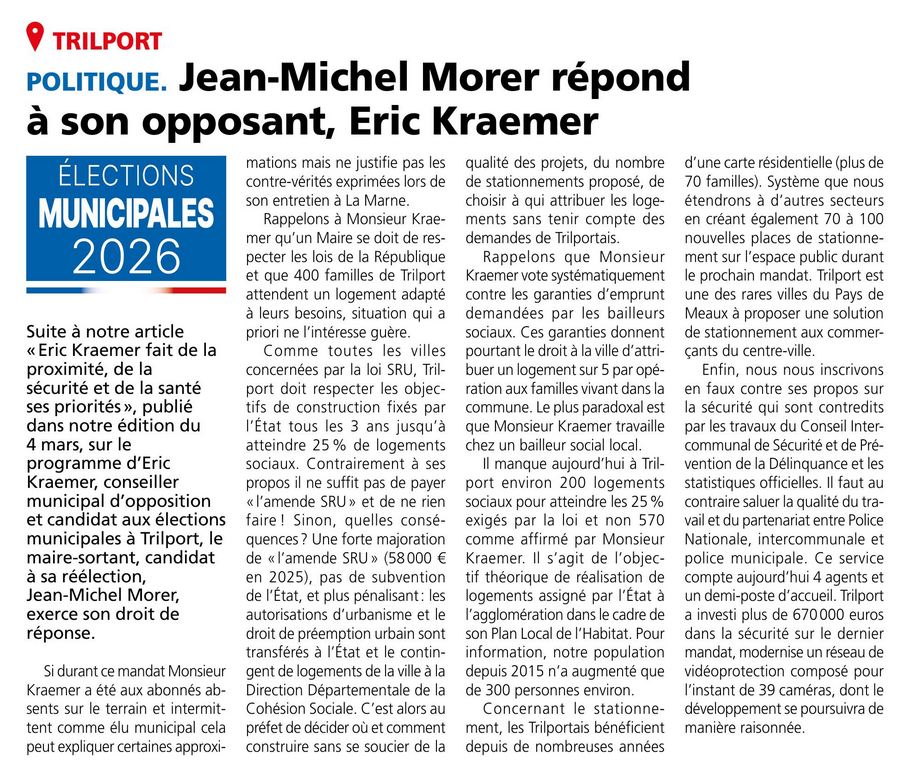 Suite à l’article consacré au programme d’Éric Kraemer, j’ai souhaité exercer mon droit de réponse.