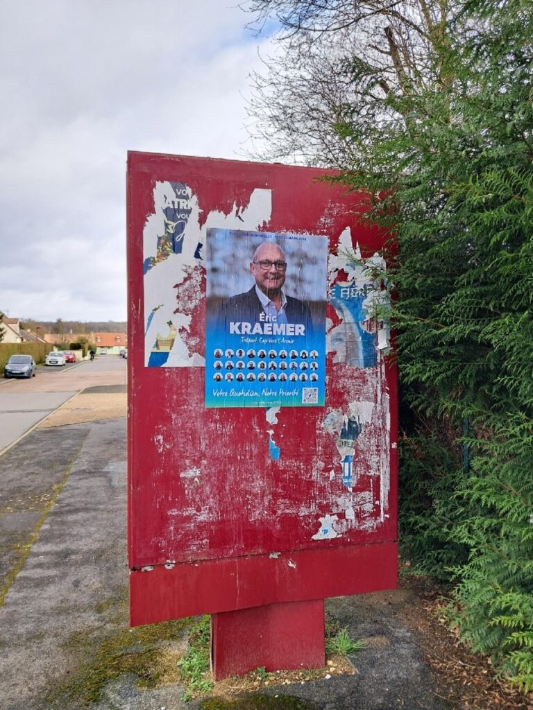 Nous avons fait le choix d’afficher uniquement à partir du 2 mars 2026, date de lancement officiel de la campagne électorale, et seulement sur les panneaux prévus à cet effet, comme le Code électoral le prévoit.