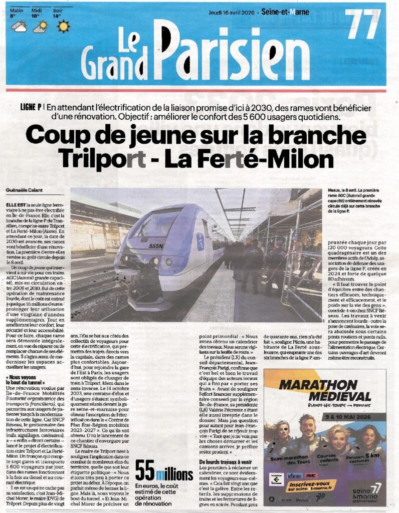 Le Parisien 77 – Seine et Marne met à l’honneur notre ligne #Trilport – La Ferté-Milon. Une reconnaissance importante… mais surtout un signal fort : notre mobilisation collective porte ses fruits.